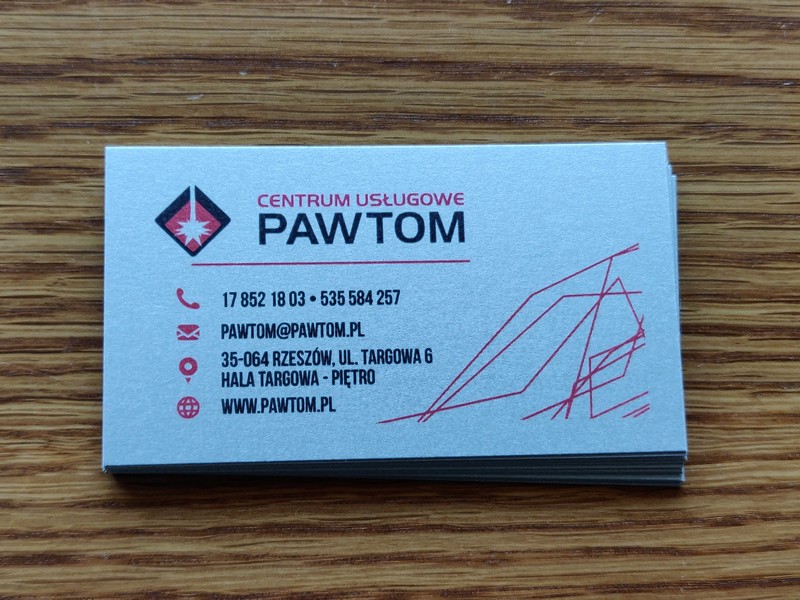 Wizytówki charakteryzują się tym, że drukowane są na wyjątkowym, gładkim, stalowym, metalizowanym, papierze czerpanym o gramaturze 300.