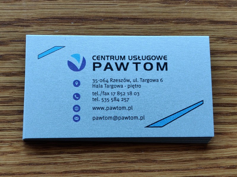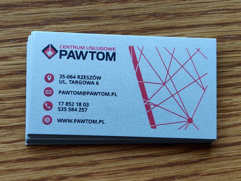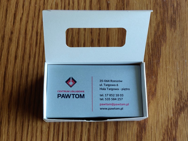 Gotowe wizytówki pakowane są w dedykowane kartonowe pudełko.