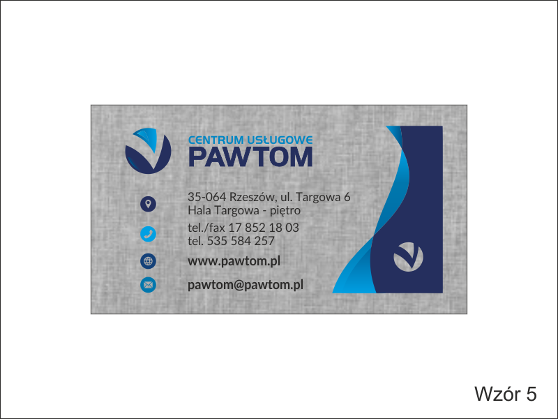 Wizytówki charakteryzują się tym, że drukowane są na wyjątkowym szarym papierze czerpanym o strukturze płótna i gramaturze 250.