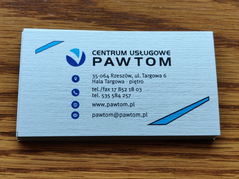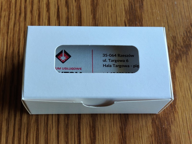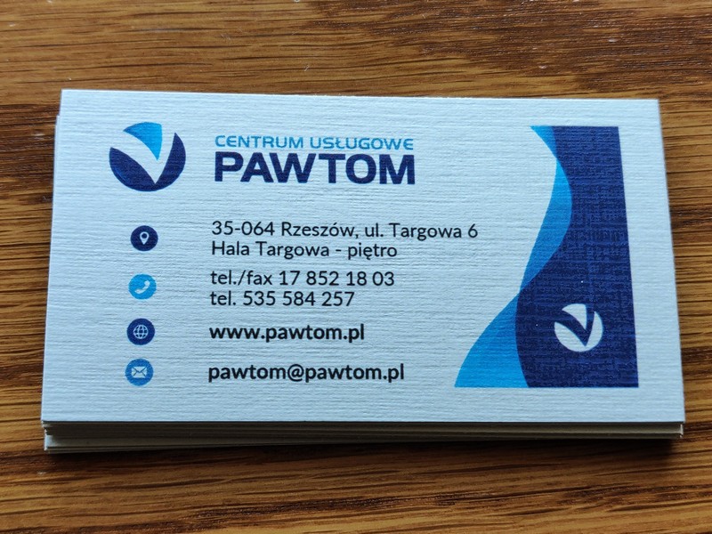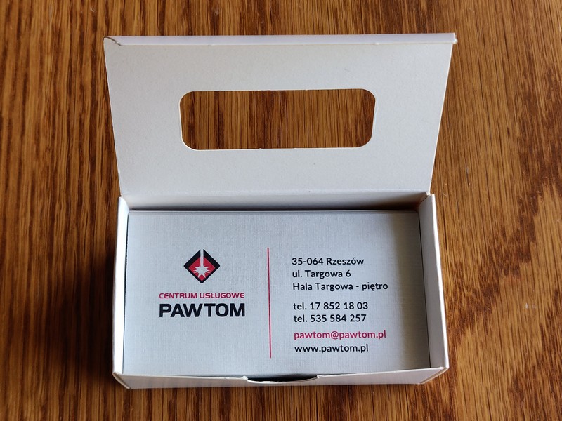 Gotowe wizytówki pakowane są w dedykowane kartonowe pudełko.