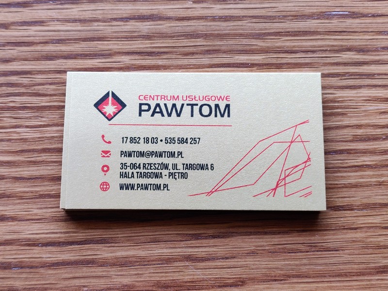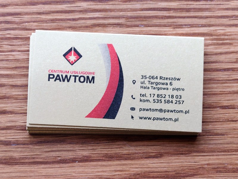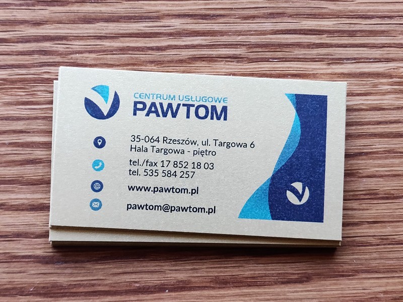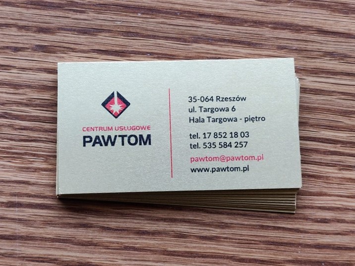 Wizytówki charakteryzują się tym, że drukowane są na wyjątkowym gładkim, złotym, metalizowanym, papierze czerpanym o gramaturze 300.