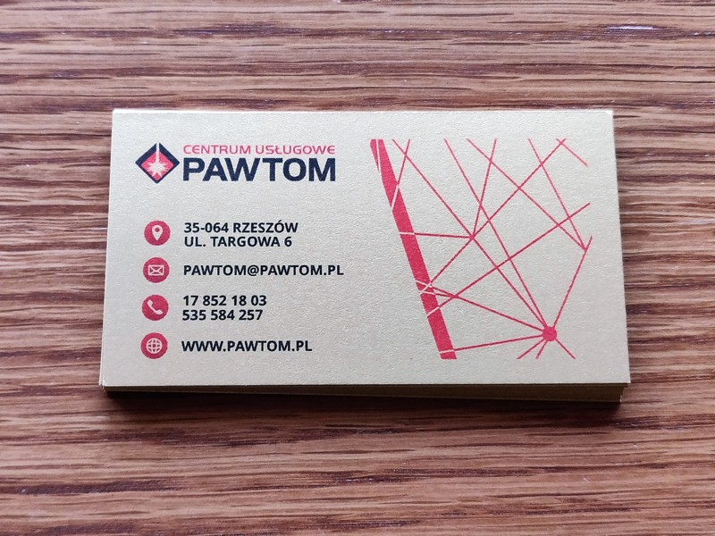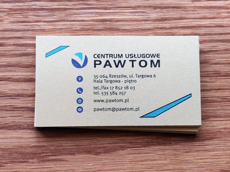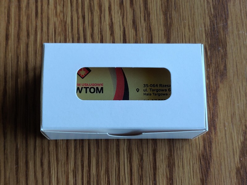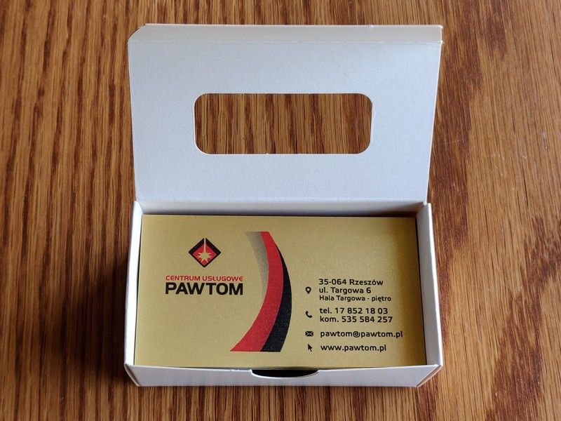 Gotowe wizytówki pakowane są w dedykowane kartonowe pudełko.