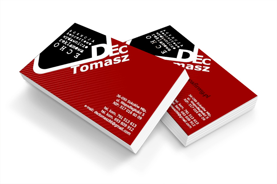 Wizytówki wykonane są po uzgodnieniu treści i indywidualnego projektu.